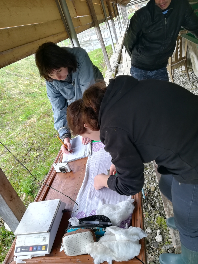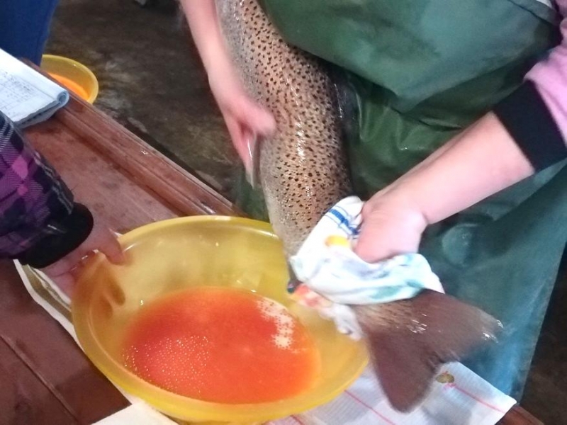 Фото 5. Студенти беруть учать у відборі статевих продуктів риб