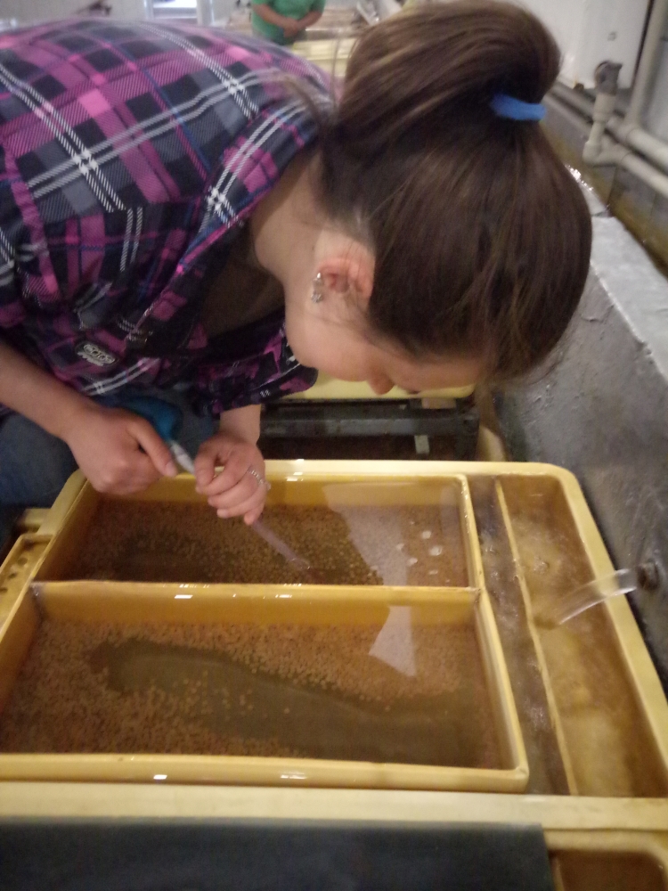 Під час практики нам була надана можливість брати безпосередню участь у виробничих процесах, пов’язаних з відтворенням лососевих риб, а саме: відбір, осіменіння та запліднення ікри, контроль за ходом інкубації ікри, а також догляд та годівля личинок та мальків, годівля плідників, профілактичні заходи (обробка ікри, личинок, риби, басейнів та ставів).
