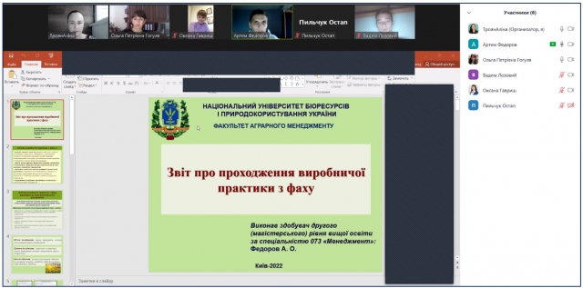 20 жовтня 2022 р. на кафедрі менеджменту ім. проф. Й. С. Завадського факультету аграрного менеджменту відбувся захист звітів за результатами виробничої практики з фаху.