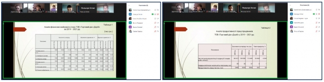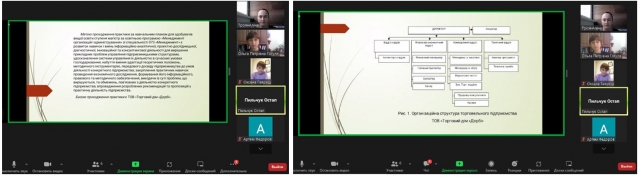 Під час захисту здобувачі другого (магістерського) рівня вищої освіти спеціальності 073 Менеджмент за ОПП «Менеджмент організацій і адміністрування» другого року підготовки презентували результати теоретико-прикладних досліджень, сформованих у процесі виконання основних пунктів програми виробничої практики з фаху, акцентуючи при цьому увагу на пропозиціях щодо вирішення управлінських питань за темами майбутніх магістерських кваліфікаційних робіт. Керівник практики ‑ доцент кафедри менеджменту ім. проф. Й. С. Завадського Аліна Троян та члени комісії – доценти кафедри Ольга Гогуля і Оксана Гавриш, заслухавши представлені звіти й оцінивши презентативний матеріал, задали уточнюючі запитання.