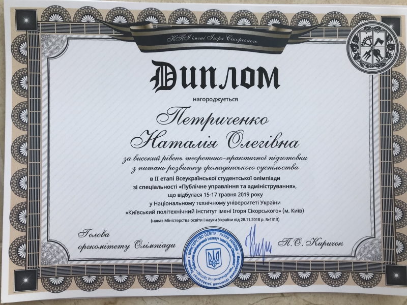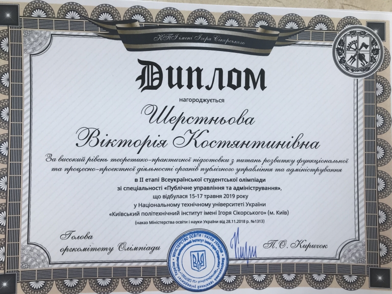 II етап Всеукраїнської студентської Олімпіади зі спеціальності «Публічне управління та адміністрування» пройшов 15-17 травня на базі Національного технічного університету України «Київський політехнічний інститут імені Ігоря Сікорського». Більше тридцяти закладів вищої освіти, серед яких такі потужні як: Національний університет біоресурсів і природокористування України, Київський національний університет імені Тараса Шевченка, Національний університет «Львівська політехніка», Полтавська державна аграрна академія, Сумський державний університет, Харківський національний університет міського господарства імені О.Бекетова та інші делегували майже сто учасників на заключний етап олімпіади.