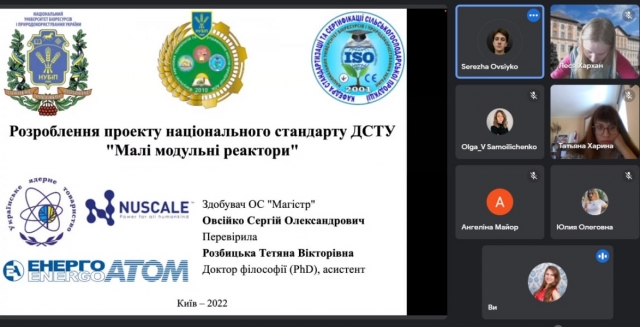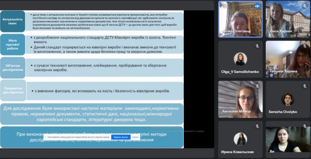 А 23 травня студенти-заочники захистили свої курсові роботи з дисципліни «Стандартизації та сертифікації сільськогосподарської продукції», що викладається на спеціальності 152 «Метрологія та інформаційно-вимірювальна техніка», освітня програма «Якість, стандартизація та сертифікація» факультету харчових технологій та управління якістю продукції АПК. Проєкти щодо розробки нормативних документів майбутні фахівці виконували під керівництвом доцента Ольги Самойліченко та асистента Тетяни Розбицької. Під час захисту студенти представили свої закінчені дослідження з тем, які стосуються нормативного забезпечення підприємств харчової промисловості в сучасних умовах.