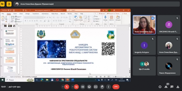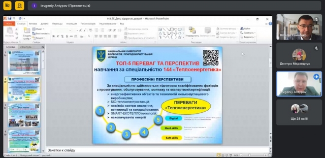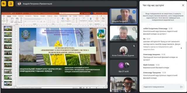 Супроводжували онлайн-захід заступник директора Віталій Савченко та гаранти освітніх програм, які презентували майбутнім вступникам чотири освітні програми за якими здійснюється підготовка фахівців в ННІ енергетики, автоматики і енергозбереження: «Електроенергетика, електротехніка та електромеханіка», «Інжиніринг електроенергетичних систем з відновлювальними джерелами», «Теплоенергетика», «Автоматизація, комп’ютерно-інтегровані технології та робототехніка».
