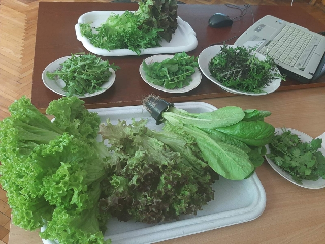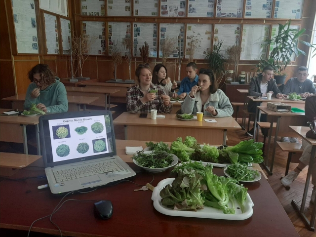 Серед зеленних культур лідером є салат посівний, який називають світовим овочем завдяки цінним властивостям і сортовому різноманіттю. На 2022 р. до Державного реєстру сортів рослин внесено 200 сортів салату. Причому їхня кількість інтенсивно зростає щороку. Під час вибору сортименту важливо знати до якої різновидності належить сорт. У виробництві важливо відрізняти різновидності салату між собою і знати їхні морфологічні особливості. В Україні відомі чотири різновидності, з смаковою оцінкою яких познайомились студенти. Це листкові сорти групи Лолло Біондо – Левістро, Ліворно та Лолло Росса – Кармесі, Конкорд, з дубоподібними червоними листками Ентоні. Інтенсивно ведеться селекція й на створення сортів салату-ромена. Серед сортименту із смаковою оцінкою сорту студенти познайомились. Водночас високою смаковою оцінкою відзначились сорти головчасті з хрусткими листками типу Айсберг – Картагенас, Сантарінас.