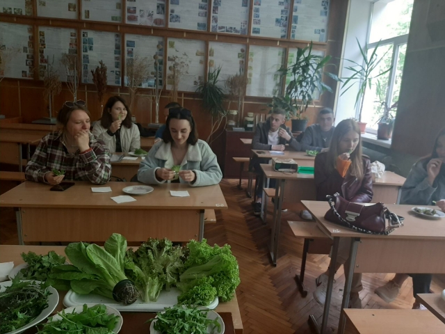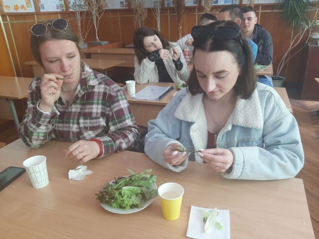При впровадженні нових видів і сортів на ринок важливою є дегустаційна оцінка, яка дає можливість оцінити їхні смакові властивості. 04 травня 2023 р. студенти 4 курсу мали змогу на заняттях в очному форматі провести дегустаційну оцінку зеленних культур за комплексом ознак (смак, консистенція, текстура тощо).