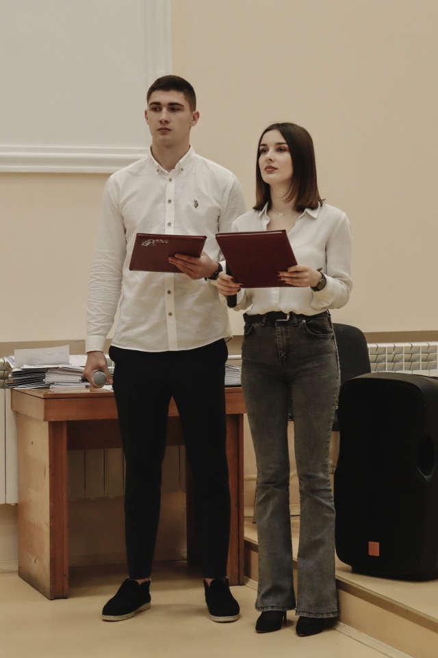 Сергій Кваша, Анатолій Остапчук та наставники академічних груп урочисто вручили студентам першокурсникам екзаменаційні книжки, а староста третьої групи спеціальності 075 Менеджмент Вероніка Слинчук від імені своїх однокурсників поділилась позитивними враженнями від університету та факультету аграрного менеджменту.