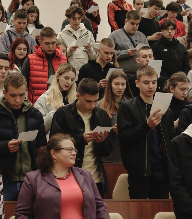 Державний гімн прозвучав в аудиторії 233 корпусу 10 корпусу, а також хвилиною мовчання вшанували пам'ять загиблих Героїв, які пішли до Небесного полку, зокрема, випускника факультету аграрного менеджменту, заступник декана з виховної роботи Сергія Романчука, що загинув у бою з окупантами.