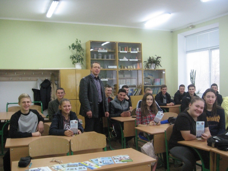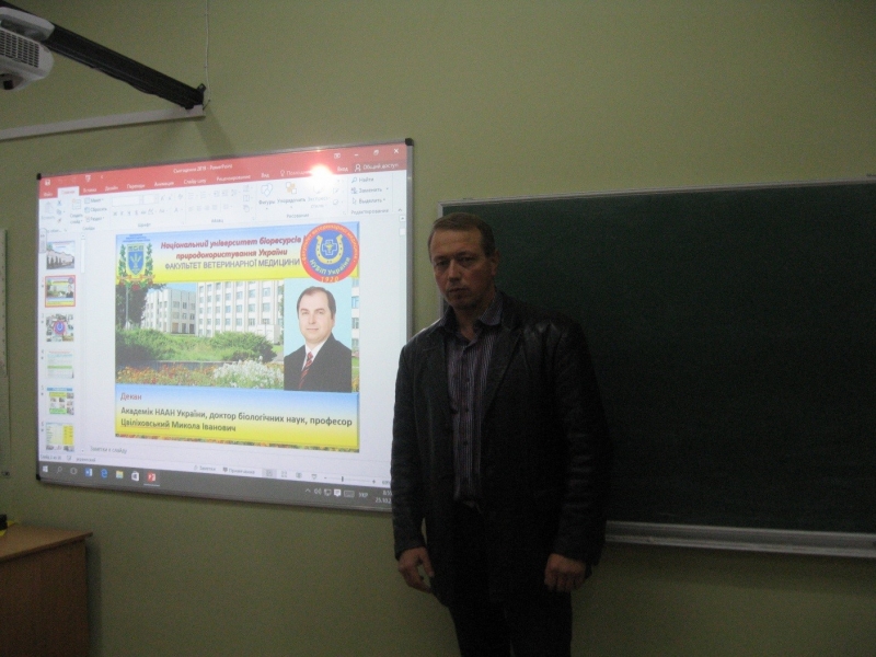У своїй профорієнтаційній бесіді Арнаута О. В. детально розповів учням про особливості вступу та переваги навчання на факультеті ветеринарної медицини НУБіП України, а також про можливість бути слухачами підготовчих курсів з підготовки до зовнішнього незалежного оцінювання знань, що діють на базі університету. Учням було роздано презентаційний матеріал.