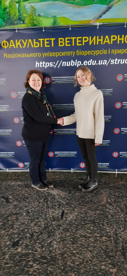 На підтвердження того, що спеціальність Ветеринарна медицина є багатогранною Анастасія під час екскурсії факультетом зустрілася з Валентиною Василівною Шарандак. За освітою Валентина Василівна лікар ветеринарної медицини, має PhD у ветеринарній мікробіології та імунології, вірусології. Ветеринарна освіта та вільне володіння мовами дало змогу приєднатися та працювати у Всесвітній організації здоров’я тварин (заснована як МЕБ (міжнародне епізоотичне бюро) у Франції. Валентина Василівна побажала Анастасії успішного вступу та жаги до навчання і опанування мов.