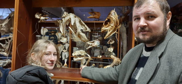 Проте, я повела Анастасію по факультету, таким маршрутом, щоб вона побачила не лише наші охайні навчальні аудиторії і лекційні зали. Ми зайшли на кафедру анатомії, відвідали гордість факультету – музей.