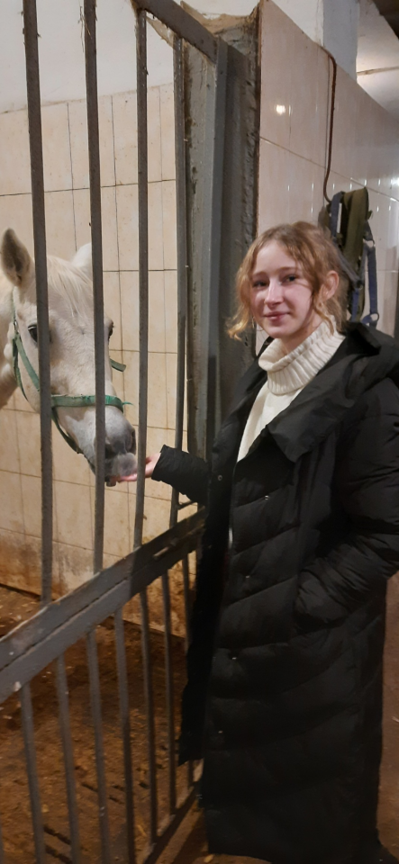 – Звичайно, не лякає. Я з дитинства обожнюю тварин. В нашому домі ніколи не було порожньо, завжди хтось був: собаки, коти, рибки, папуги, хом'яки. Нажаль, наразі залишилася тільки одна собака, якого я дуже сильно люблю, він як член нашої родини. Але, напевно, найбільше я люблю коней, захоплююсь їхньою грацією. Вже кілька років займаюсь кінним спортом.