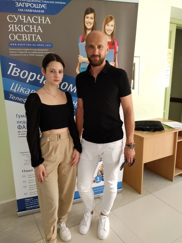 От і завершальний тиждень подачі документів на навчання за контрактом на гуманітарно-педагогічному почався оптимістично: подавати документи на спеціальність «Міжнародні відносини» разом із татом прийшла колишня київська школярка, а нині абітурієнтка НУБіП України – Ковальова Юлія Максимівна. Своє життєве кредо вона описала словами: «Ловлю моменти та маю жагу до нових знань!» Розповідаючи про себе, Юля неодноразово підкреслила важливість для неї фундаментальної освіти. Вона розглядає її і як запоруку своїх майбутніх професійних фахових успіхів, і як життєву потребу – для ухвалення правильних рішень, для всебічного та системного розуміння життєвих питань і турбот, з якими доведеться стикнутись в майбутньому.