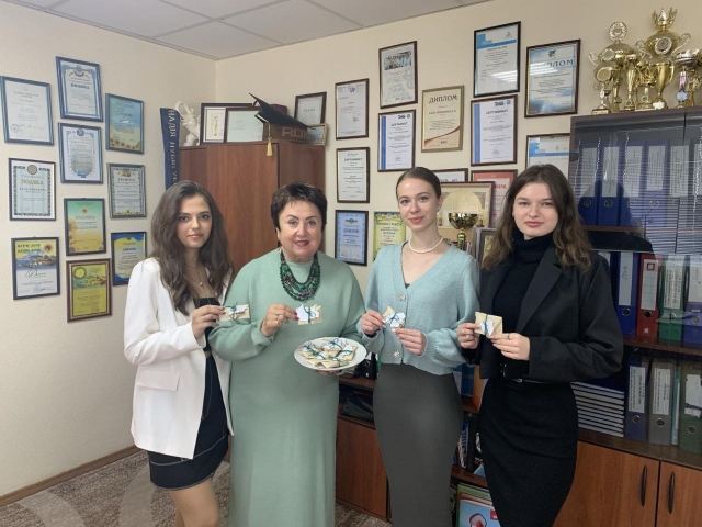 Пастила – це натуральний солодкий десерт, який виготовляється шляхом висушування (дегідратації) за низьких температур пюре з фруктів, овочів та ягід. Пастила має м’яку текстуру та приємний смак і часто використовується як заміна цукеркам або іншим десертам. Пастила містить велику кількість вітамінів, мінералів та харчових волокон з фруктів, овочів та ягід, що робить її корисною для здоров’я. Вона має низький вміст жиру та є низькокалорійною, тому є дієтичним продуктом та підходить у якості десерту для тих, хто прагне схуднути чи просто слідкує за фігурою. Пастила готується без додавання хімічних консервантів, ароматизаторів, барвників та цукрів. Ми з ентузіазмом та зацікавленістю сприйняли таку ідею по приготуванню пастили, бо це новий тренд серед десертів у світі здорового харчування. Пастила є популярним десертом в багатьох країнах світу, зокрема в Україні, США, Туреччині, Індії та інших країнах. Вона може бути виготовлена з різних фруктів, овочів та ягід, також із їх сумішей. Ми вирішили приготувати фруктову та фруктово-ягідну пастилу, бо вважаємо, що саме ці види найбільше подобаються людям. Обрали три смаки: яблучно-апельсиновий, яблучно-апельсиновий з корицею та яблучно-апельсиново-полуничний. Для приготування використали наступну технологію: спочатку запекли яблука, потім подрібнили їх в блендері, додали заздалегіть подрібнені в блендері апельсини, змішали їх. Пюре виклали тонким шаром на піддон, попередньо змазаний оливковою олією, таку ж саму технологію використали для інших смаків.Ми звернули увагу, що в’язкість та консистенція були більш густими при додаванні кориці та полуниці на відміну від пастили, в якій використовували лише яблука та апельсини. Процес сушіння тривав 14 годин за температури 50 ºС. Оцінюючи органолептичні показники різних видів пастили, ми прийшли до висновку, що додавання будь-яких інших компонентів впливають на її смак, запах та консистенцію. Найбільше смакували два види пастили, які були без додавання кориці, яка, незважаючи на невелику додану кількість, перекривала смак та запах апельсину. До процесу пакування ми вирішили підійти креативно: нарізали пастилу на прямокутники, скрутили їх в трубочки і запакували в конверти, перев’язавши стрічкою, та додали теплі побажання. Коли, як не в наш час, дарувати нашим близьким теплі та приємні емоції. Запропонували викладачам та студентам із усіх конвертиків з пастилою вибрати свій конвертик, який кому дістанеться за смаком і нашими побажаннями. Серед побажань були наступні, наприклад: «З Вами солоденьке до чаю непотрібне», «Придбайте собі щось нове», «Ви супер!», «Вас чекає сюрприз», «Вас чекає романтична вечеря» і т.д.