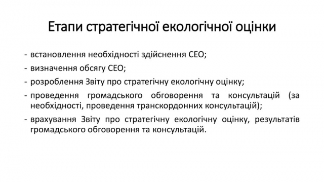 Світлана Паламарчук виступила з доповіддю на тему «Стратегічна екологічна оцінка: напрямки розвитку і перспективи». Вона пояснила, що стратегічна екологічна оцінка (далі СЕО) – процедура визначення, опису та оцінювання наслідків виконання документів державного планування для довкілля, в тому числі здоров’я населення, виправданих альтернатив та розроблення заходів із запобігання, зменшення та відшкодування можливих негативних наслідків. Світала Петрівна розповіла, що не підлягає стратегічній екологічній оцінці, детально зупинилася на особливостях та етапах СЕО, пояснила, що відбувається після оприлюднення звіту та як в подальшому впливає громадське обговорення.