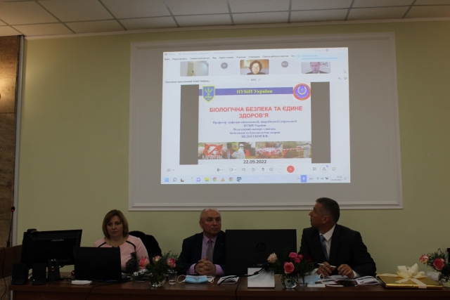 Центровою була доповідь доктора ветеринарних наук, професора Нєдосєкова Віталія Володимировича на тему «БІОЛОГІЧНА БЕЗПЕКА ТА ЄДИНЕ ЗДОРОВ’Я», яка об’єднала ризики, з якими стикається людство щодо розповсюдження найбільш небезпечних зоонозних хвороб, шляхи запобігання їх поширенню та прогнозування методів запобігання, що й включає в себе елементи біологічної безпеки.