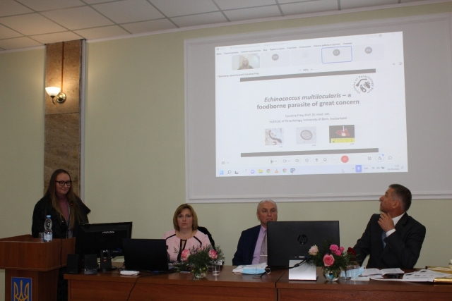 Результати наукових досліджень щодо збудника небезпечного зоонозу, який може міститися у харчових продуктах Echinococcus multilocularis і бути надзвичайно небезпечним для людини у своїй доповіді представила Caroline Frey Marreros Canales, Prof. Dr. med. vet., директор Інституту паразитології Університету Берну (м.Берн, Швейцарія)