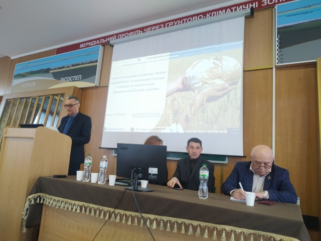 Продовжив конференцію директор ННЦ «Інститут землеробства НААН», член-кореспондент НААН Микола Ткаченко із доповіддю “Сучасний стан і перспективи формування систем землеробства та землекористування в контексті забезпечення продовольчої безпеки держави”.