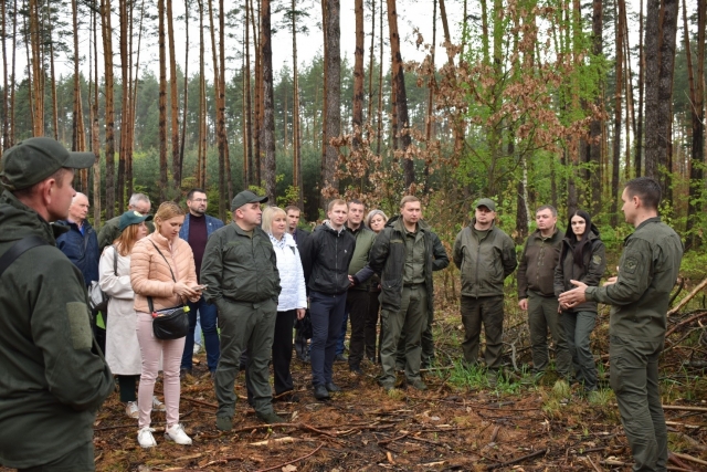 Після вступної презентації про філію та особливості ведення лісовового господарства у лісах лісівниками філії було організовано екскурсію на лісові ділянки, де вже було апробовано поступові рубки головного користування в соснових лісах.