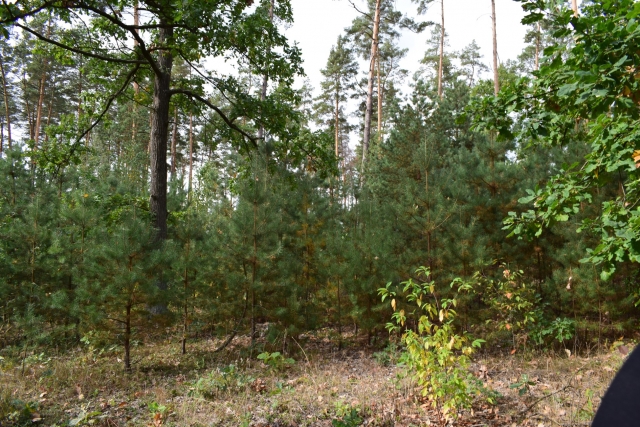 - Рівномірно-поступова 2-х прийомна рубка в Поташнянському л-ві, кв. 56, вид. 1, на площі 3,1 га. В березні 2006 р. проведено 1-й прийом рівномірно-поступової рубки. Після рубки повнота склала 0,3. Перед рубкою здійснено сприяння природному поновленню сосни шляхом розпушування верхнього шару ґрунту знаряддям «Ромашка». Надійне природне поновлення сосни звичайної з’явилося у 2006 році. Догляди за природним поновленням не проводились. Восени 2010 року ділянку було розділено на 4 секції (80х100м). На секції №1 у лютому 2011 року здійснено вилучення залишеної частини деревостану. Згідно обліку проведеного влітку 2012 року густота поновлення становила: Сз – 22,3 тис. шт. на гектарі; Дз – 0,5 тис. шт. на гектарі; Бп – 0,5 тис. шт. на гектарі. Вік підросту 3-7 років, середня висота – 1,1 м., зімкненість – 0,8. Оцінка успішності відновлення «добре». На секції №2 у лютому 2011 року вирубано 50 % залишених дерев. Залишена частина дерев мала повноту 0,15. Густота сосни звичайної становила 26 тис. шт. на гектарі, середня висота – 1,0 м. Оцінка відновлення «добре». На секції № 3 у лютому 2011 року було вирубано 25 % залишених дерев. Густота підросту становила 15,8 тис. шт. на гектарі. Успішність поновлення «задовільна». На секції №4 другий прийом не проводили (було залишено всі дерева, які лишилися після 1-го прийому рубки). Деревостан мав повноту 0,3. Густота підросту сосни становила 12,5 тис. шт. на гектарі, дуба 0,8 тис. шт. на гектарі. Успішність поновлення оцінена як «добре». В жовтні 2015 року було проведено перший догляд (ОСВ). Рубка проведена селекційним методом. Вибиралося 6 м3 з гектара. За кількістю дерев інтенсивність становила 50 %. (до рубки кількість дерев становила 12 тис. шт. на гектарі, після рубки 6 тис. шт. на гектарі). У 2023 році на всій ділянці проведено прочищення. Маса деревини, яка вирубувалася під час прочищення становить 9 м3 з гектара, інтенсивність рубки – 23%.