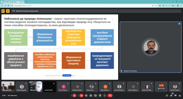 Принципи та критерії наближеного до природи лісівництва у своїй доповіді висвітлив завідувач кафедри лісівництва Національного лісотехнічного університету України проф. Григорій Криницький, поділившись досвідом наукової діяльності щодо застосування підходів наближеного до природи лісівництва у західному регіоні України. За словами Григорія Томковича: "Наближене до природи лісівництво, як найбільш дієвий інструмент сталого ведення лісового господарства, передбачає механізми формування деревостанів, які здатні до самовідновлення, самозахисту та саморегуляції, що забезпечує їх високу стійкість до хвороб, шкідників та негативних явищ природи, екологічну стабільність та високу продуктивність".