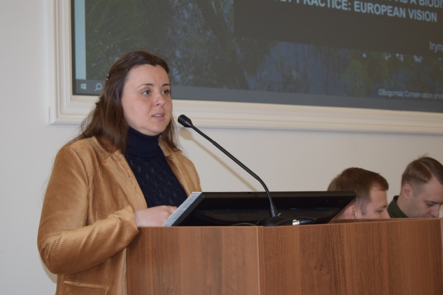 Про наближене до природи лісівництво як практику збереження біорізноманіття в контексті європейського бачення ділилася з присутніми асистентка проєктів напряму «Ліси» WWF-Україна, кандидат сільськогосподарських наук Ірина Проценко.
