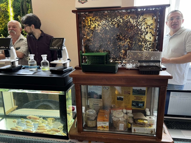 У Гербовій залі, яка находиться біля актової зали всіх учасників і гостей конференції зустрічала виставка розробок і досягнень факультетів Національного університету біоресурсів і природокористування України.