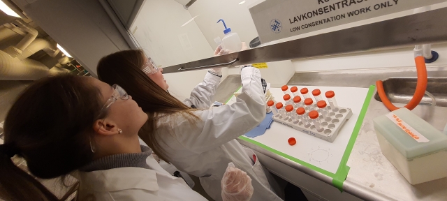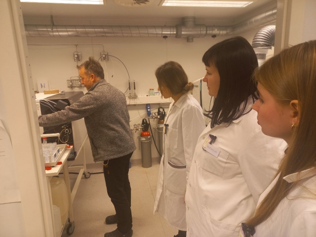 Велика увага була приділена проведенню лабораторних дослідів, набуттю практичних знань та навичок у радіоекологічних дослідженнях, а саме: брали участь у проведенні пробопідготовки зразків корму риби мікрохвильовим методом для проведення мас-спектрометрії, проводили разом із норвезькими колегами дослідження складу корму для риб за допомогою методу мас-спектрометрії з індуктивно-зв’язаною плазмою на приладах Agilent 8900 ICP-MS Triple Quard (Agilent Technologies, Німеччина) та NexION 5000 (Perkin Elmer, США).