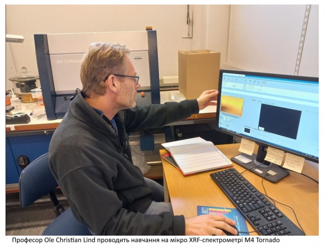 Під час роботи в лабораторії побачили роботу мікро XRF-спектрометра M4 Tornado, який використовується для визначення характеристик зразків за допомогою мікрорентгенівської флуоресценції. За допомогою цього приладу можна отримати карти вмісту хімічних елементів у дослідних зразках.