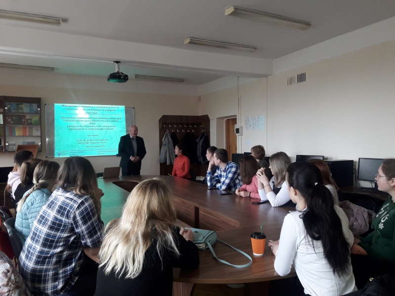 На запрошення кафедри менеджменту ім. проф. Й.С. Завадського та за сприяння проекту «Німецько-український агрополітичний діалог» (APD) 26 березня 2019 р. Др. Міхаель Шмітц, професор Гіссенського університету імені Юстуса Лібіха (Юстус-Лібіх Університет Гіссен, Німеччина) прочитав лекцію студентам факультету аграрного менеджменту на тему: «Міжнародні стандарти у науковій роботі».