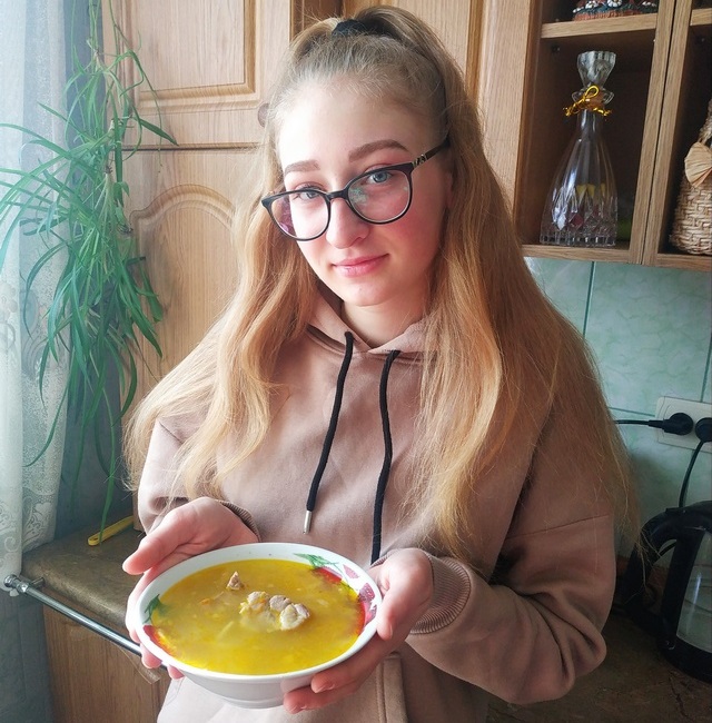«Намагайтесь не класти в свої супи консервовані овочі. Найкраще підійдуть свіжозібрані. Але, якщо не сезон, віддайте перевагу замороженим. Вони додадуть аромату вашої страви нотки весняної свіжості. Їх, до речі, можна самому заготовити влітку і восени», - порада від досвідченої майстра виробничого навчання Наталії Пчелінової. ЇЇ гречаний суп так і хочеться скуштувати!