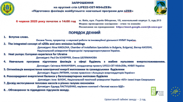 Формування нових компетентностей сприятиме активнішому впровадженню технологій на основі ВДЕ в будівлях з майже нульовим енергоспоживанням (NZEB), забезпечить стабільне зростання енергетичної ефективності сектору та залучення інвестицій. У довгостроковій перспективі це посилить енергонезалежність громад, сприятиме децентралізації енергетичних систем і пришвидшить реалізацію кліматичної політики на місцевому та національному рівнях. У Навчально-науковому інституті енергетики, автоматики і енергозбереження за ініціативи Національного університету біоресурсів і природокористування України, Інституту загальної енергетики НАН України та за підтримки Кластеру цифрової енергетики відбулася третя Міжнародна науково-практична конференція «Цифрові технології в енергетиці і автоматиці». У рамках конференції проведений другий семінар: «Підготовка фахівців майбутнього: навчальні програми для NZEB» проєкту «New Skills for Nearly Zero Energy Buildings» (Нові навички для будівель з майже нульовим енергоспоживанням). Основною метою проєкту NS4nZEBs є збільшення кількості фахівців в частині фотоелектричних систем, розумних мереж, впровадженні теплових насосів, накопичувачів енергії, локальних водневих систем на всіх рівнях проєктування, експлуатації, обслуговування та визначення вартості. Нові навички фахівців сприятимуть активнішому впровадженню та нарощування потенціалу енергоефективних технологій з ВДЕ, стимулюватимуть інвестиції щодо реалізації політики, спрямованої на енергонезалежність та застосування локальних відновлюваних джерел у будівлях.