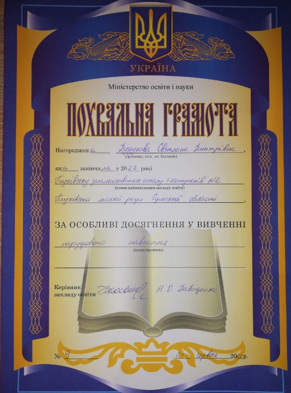 Ой, не люблю вихвалятися. Я неодноразово брала участь в олімпіадах з української мови, хімії, фізики, трудового навчання та інформатики. Маю грамоти.