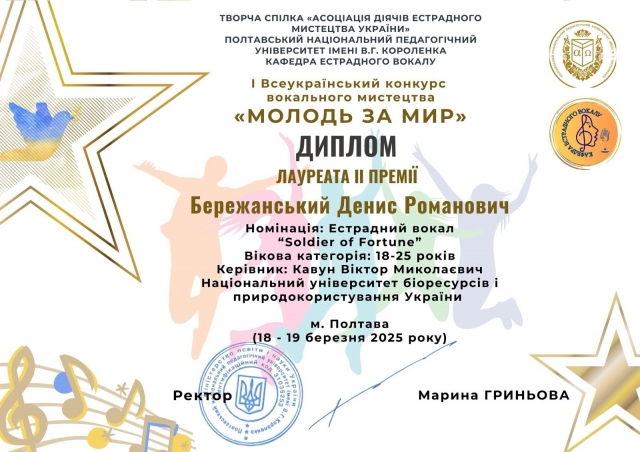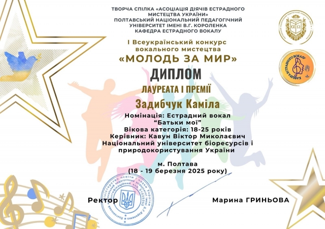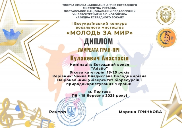 Чудові результати конкурсу порадували і наших студентів, і їх керівників. Відтак студія сольного співу «Солоспів» - Задибчук Каміла (1 премія), Охріменко Дарія (2 премія), Бережанський Денис (2 премія), Литвин Вікторія (3 премія) та Народну студію академічного, естрадного та джазового співу - Рябоконь Ярослав (1 премія) та Анастасія Кулакевич (Гран-прі).