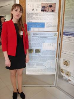 Аспірантка кафедри лісової таксації та лісовпорядкування Марина Голяка представила матеріали спільного дослідження вчених НДІ лісівництва та декоративного садівництва та Української лабораторії якості і безпеки продукції АПК щодо встановлення ролі деревного детриту у формуванні різноманіття мікобіоти в лісових насадженнях Українського Полісся.