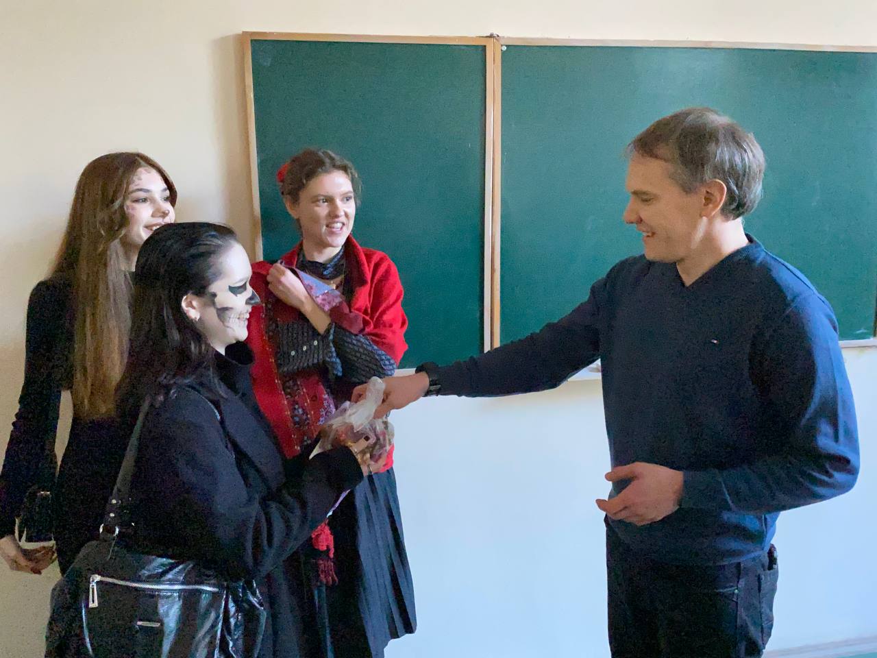 У цей день університет перетворився на осередок чарів, посмішок і доброго настрою: студенти з’явилися у костюмах міфічних істот, героїв літератури та улюблених персонажів англомовного світу. Вони традиційно розповідали вірші, які промовляють на Halloween, серед яких звучало й веселе англійське привітання: