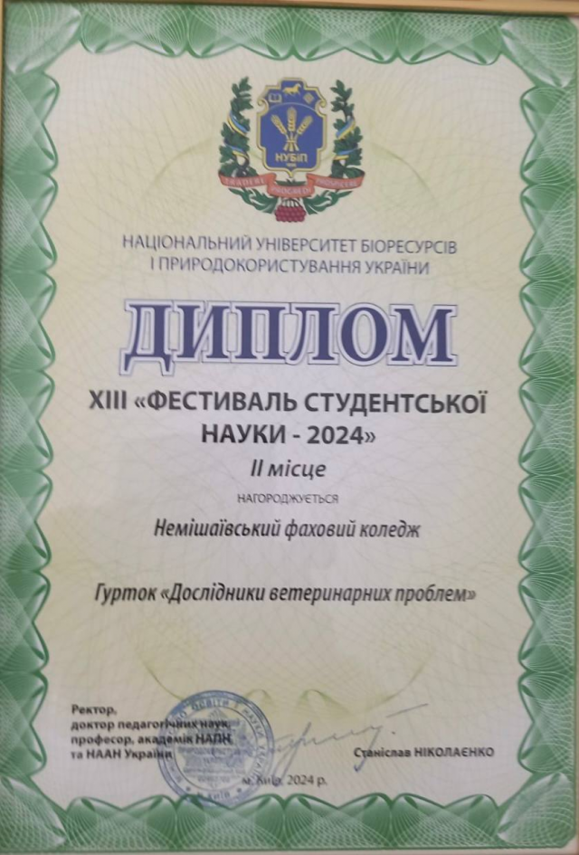 - Моя заповітна мрія нині стати студенткою факультету ветеринарної медицини НУБіП України, а з часом – дипломованим лікарем ветеринарної медицини. Вибір університету для вступу зробила ще за час навчання в коледжі. Я не одноразово відвідувала НУБіП і сам факультет ветеринарної медицини. Була обізнана у його надзвичайно високому професійному рівні професорсько-викладацького складу. Під час проходження навчальної та виробничої практики у ветеринарних клініках я познайомилася з багатьма успішними випускниками університету та остаточно зрозуміла, що саме НУБіП є для мене пріоритетом. Окрім того, він посідає сьоме місце в загальному рейтингу закладів вищої освіти України, що також є надзвичайно важливим і свідчить про професіоналізм викладачів. Карл Сентберг казав: «Все, що існує у світі, колись було мрією». Тому я впевнена, що моя мрія стати лікарем ветеринарної медицини обов’язково здійсниться і, колись я зможу так само з гордістю сказати: «Я навчалася у Національному університеті біоресурсів і природокористування України».