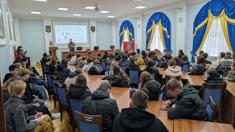 Зустріч провели представники відділу міжнародних зв'язків НУБіП України: начальник відділу Максим Клименко та провідний фахівець Ярмошенко Оксана. Організатори розповіли про можливості академічної мобільності та стажування за кордоном, підкресливши важливу роль рівня академічної успішності для участі в міжнародних програмах.