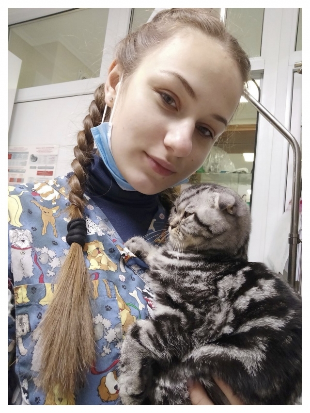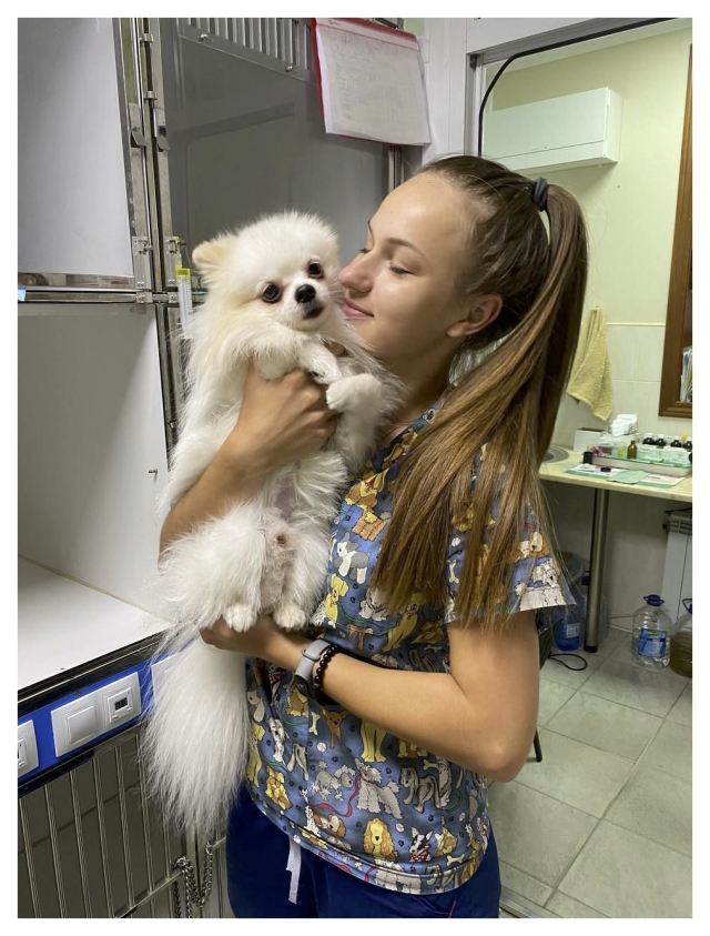- На 2 курсі у листопаді я випадково спитала свого друга, який працював вже у ветеринарній клініці в Києві, чи випадково там не треба асистенти. Його відповідь була позитивна. І ось, я за 2 дні збираю сумку і виїжджаю в столицю з свого міста на співбесіду, мені дуже пощастило потрапити в клініку, до того ж мене взяли взагалі без досвіду. Завдяки лікарям ветеринарної клініки я протягом року виросла зі звичайного асистента-стажера до лікаря-ординатора. Насправді, дуже важливо потрапити у клініку, де тебе всьому навчать, я їм безмежно вдячна. На сьогодні я вже можу проводити первинні огляди, призначати лікування, проводити класичні ветеринарні операції.