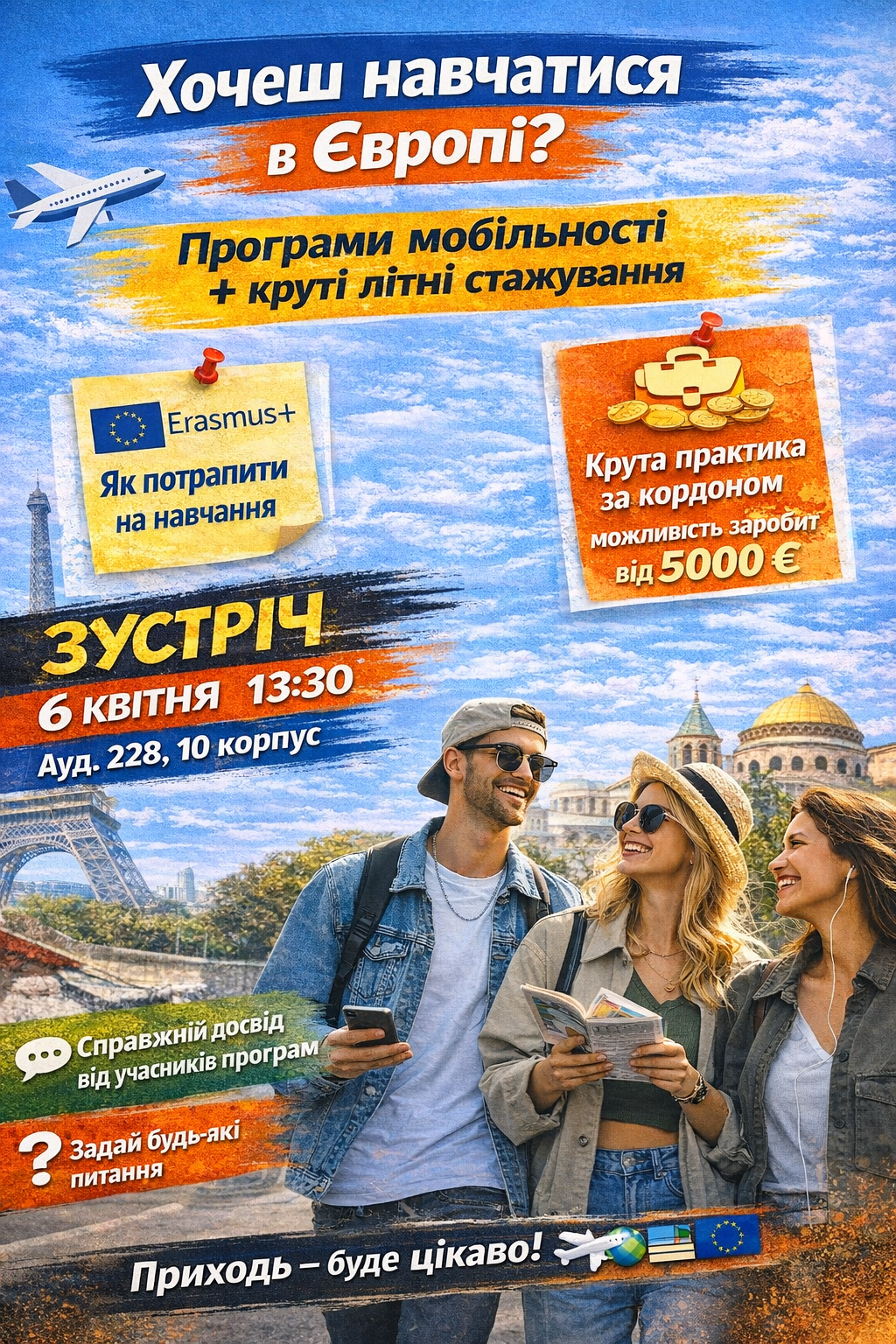 Ти мрієш не лише навчатися, а й подорожувати, відкривати нові культури, знайомитися з людьми з усього світу та здобувати унікальний досвід?