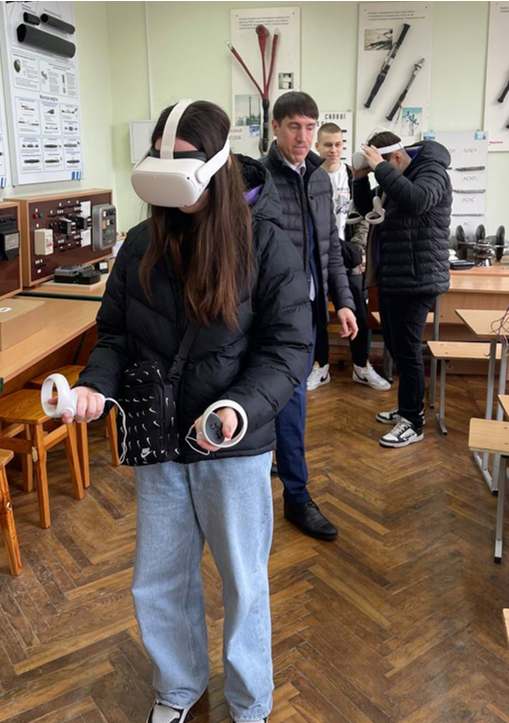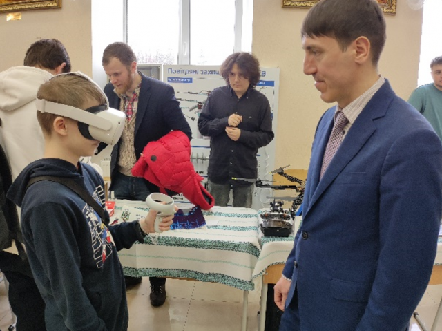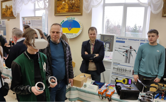 Майбутнім енергетикам дуже сподобались технології віртуальної реальності, які використовуються у навчальному процесі кафедри електропостачання. Доцент Андрій Петренко допомагав учням відчути ефект повного занурення в робочий процес на різних енергетичних об’єктах.