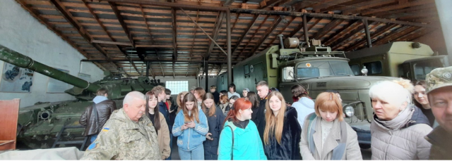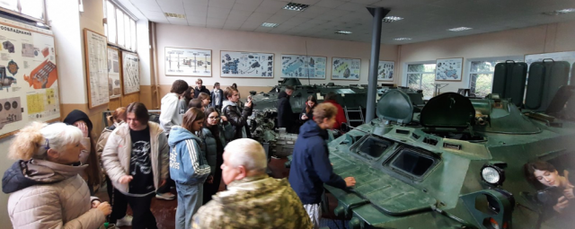 І на завершення такої насиченої програми наші гості відвідали кафедру військової підготовки НУБіП України, де полковник Олександр Турлюн розповів про умови, у яких можна паралельно з опануванням основного фаху, одержати якісну військову підготовку. Майбутні вступники мали змогу побувати у навчальних класах кафедри військової підготовки, побачити реальні бойові машини БМП, танки та БТРи, відчути себе танкістами та піхотинцями, ознайомитись із різними видами стрілецької зброї та навіть «прицілитись» протитанковою керованою ракетою NLAW.