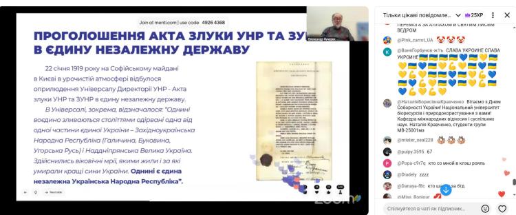 І сьогодні викладачі та студенти гуманітарно-педагогічного факультету НУБіП України спеціальності С3 «Міжнародні відносини» активно долучились до спеціального онлайн-уроку від Освітнього центру Верховної Ради України, щоб разом відсвяткувати, вшанувати і засвідчити – ми разом, ми єдині!