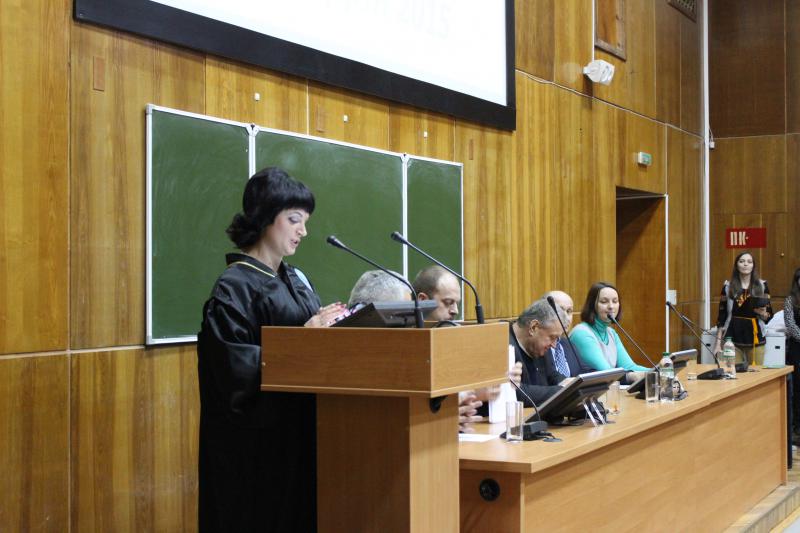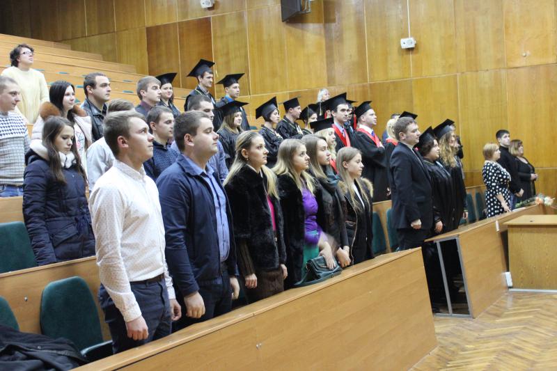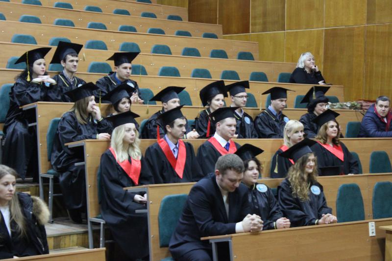 Випускників, музичним подарунком, привітала студентка 3-го курсу Врублевська Ірина. Декан факультету Остапчук Анатолій Дмитрович побажав магістрантам наснаги, а головне успіхів у майбутньому житті, також вручив подяки за організаційний внесок у розвиток факультету старостам груп.