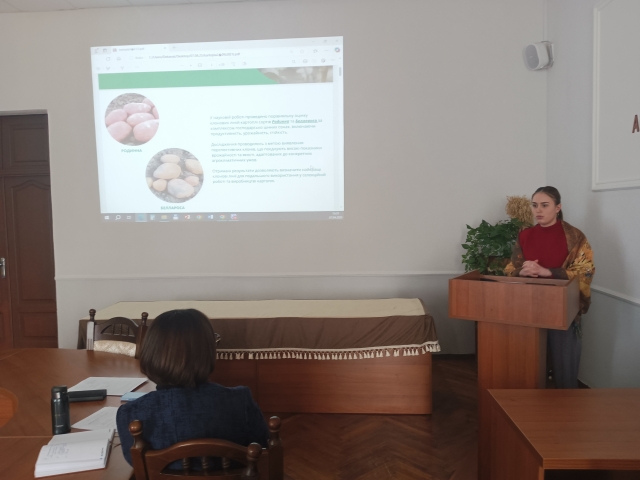 2. Тхорик Любов, наук. керівник – к. с.-г. н. Семенко Л.О. «Ідентифікація перспективних клонових ліній картоплі сортів Родинна та Белла роса за комплексом господарсько цінних ознак» з галузі знань «Агрономія» – 89,5 бали – ІІ місце;