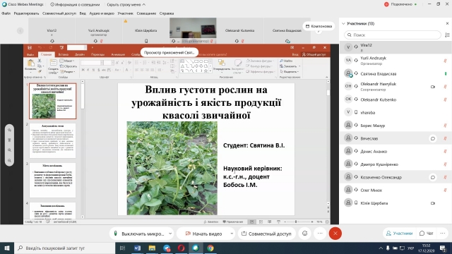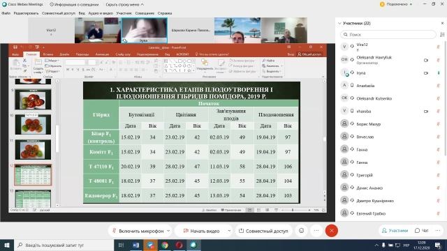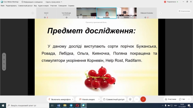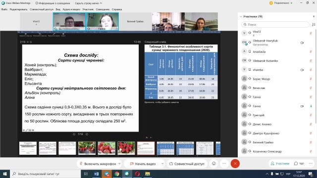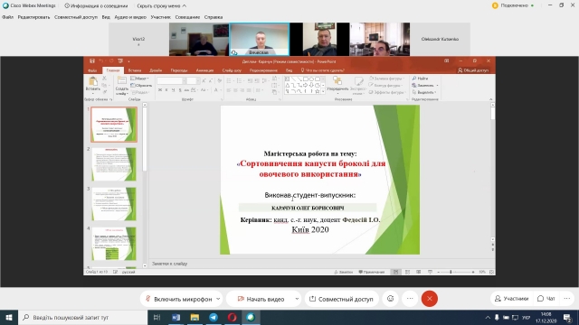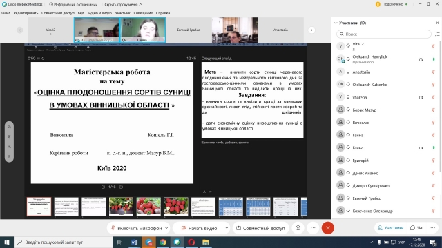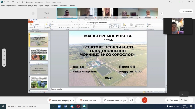 17 грудня 2020 року відбувся захист магістерських робіт денної та заочної форм навчання спеціальності «203 Садівництво та виноградарство». Захист відбувся з дотриманням вимог положення «Про підготовку і захист магістерської роботи в НУБіП України», а також «Тимчасового порядку дистанційної роботи у НУБіП України у 2020-2021 н.р. в умовах адаптивного карантину».