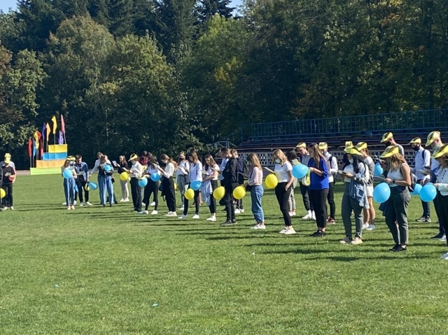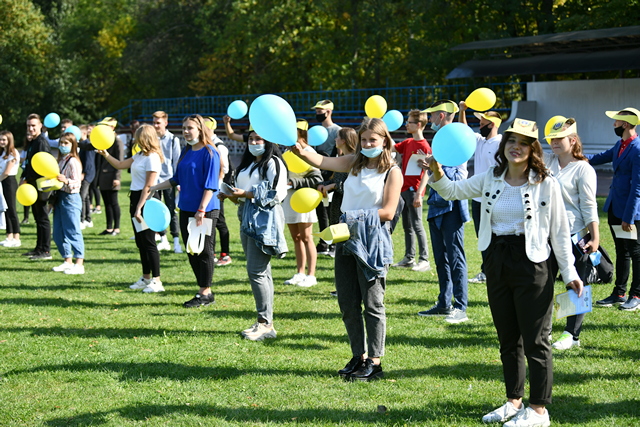 Колони першокурсників у супроводі своїх кураторів пройшли від десятого корпусу до стадіону НУБіП України, де всі студенти вишикувались з дотриманням необхідної соціальної дистанції. Проректор з навчальної і виховної роботи Сергій Кваша, декан факультету аграрного менеджменту Анатолій Остапчук, директор ННЦ виховної роботи і соціального розвитку Геннадій Ржевський, заступники декана факультету аграрного менеджменту та завідувачі кафедр факультету взяли участь у заході.