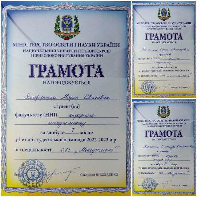 На факультеті аграрного менеджменту відбулося нагородження призерів І етапу Всеукраїнської студентської олімпіади зі спеціальності 073 «Менеджмент»