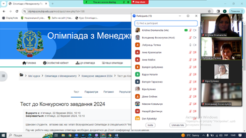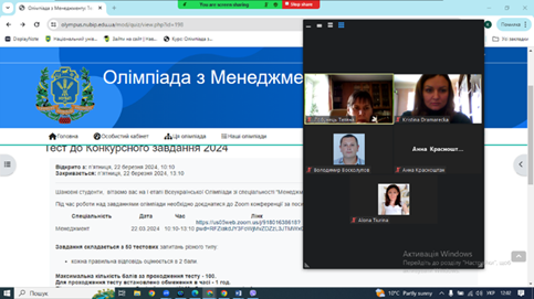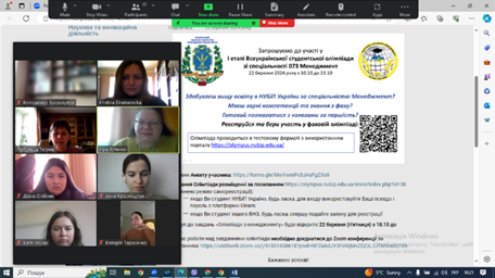 22 березня 2024 року на факультеті аграрного менеджменту пройшов І етап Всеукраїнської студентської олімпіади зі спеціальності 073 «Менеджмент». 36 студентів НУБіП України 2, 3 і 4 курсу першого (бакалаврського) рівня вищої освіти позмагалися за першість з фаху працюючи над завданнями олімпіади на платформі link