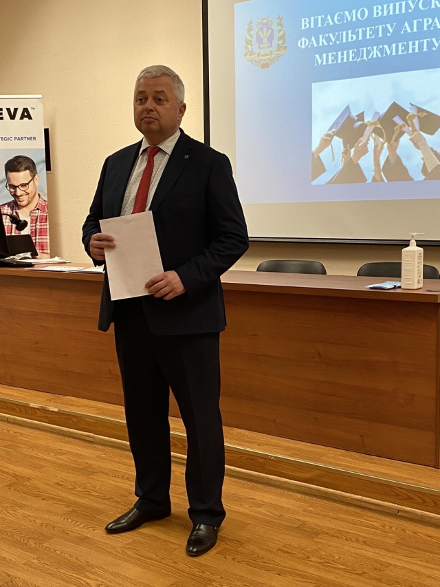Декан факультету аграрного менеджменту Анатолій Остапчук урочисто привітав випускників з набуттям освітнього ступеня «Бакалавр», однак, зауважив, що зібратися ми змогли тільки завдяки тому, що нас мужньо боронять ЗСУ. Сумно, що цієї ночі наша країна знову зазнала повітряних атак з боку підступного ворога, але, безперечно, Перемога вже скоро, і у це необхідно вірити.