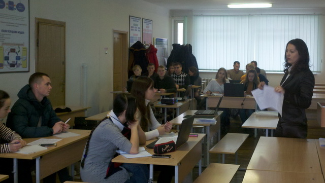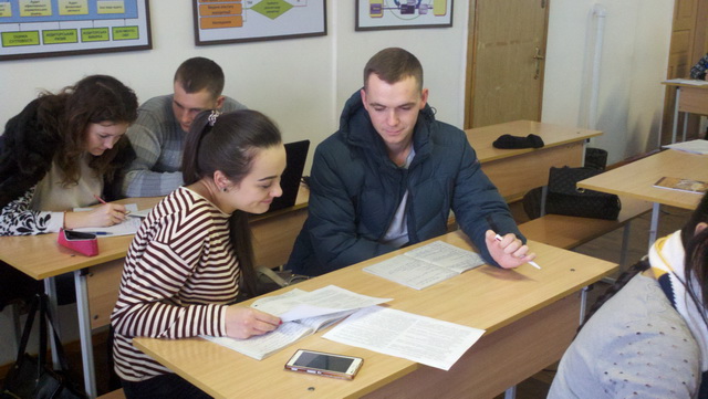 Студенти за пропозицією викладача поділились на дві групи для використання у навчальному процесі змагально-ігрового методу характерною особливістю якого є обов'язкова присутність змагально-ігрової діяльності двох протиборчих сторін. Це спосіб придбання і вдосконалення знань, умінь і навичок, розвитку навчальних і морально-вольових якостей в умовах гри або змагання.